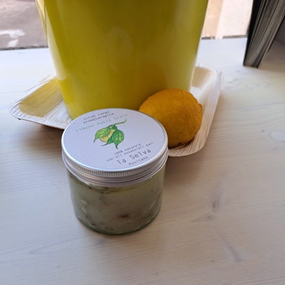 Ingrédients : sodium chloride, prunus amygdalus dulcis oil, armeriaca kernel oil, tocopherol, citrus limon peel oil, citrus aurantium amara leaf/twig oil, citrus limon peel, helianthus annuus seed oil, citrus limon leaf, perlagonium graveolens flower oil